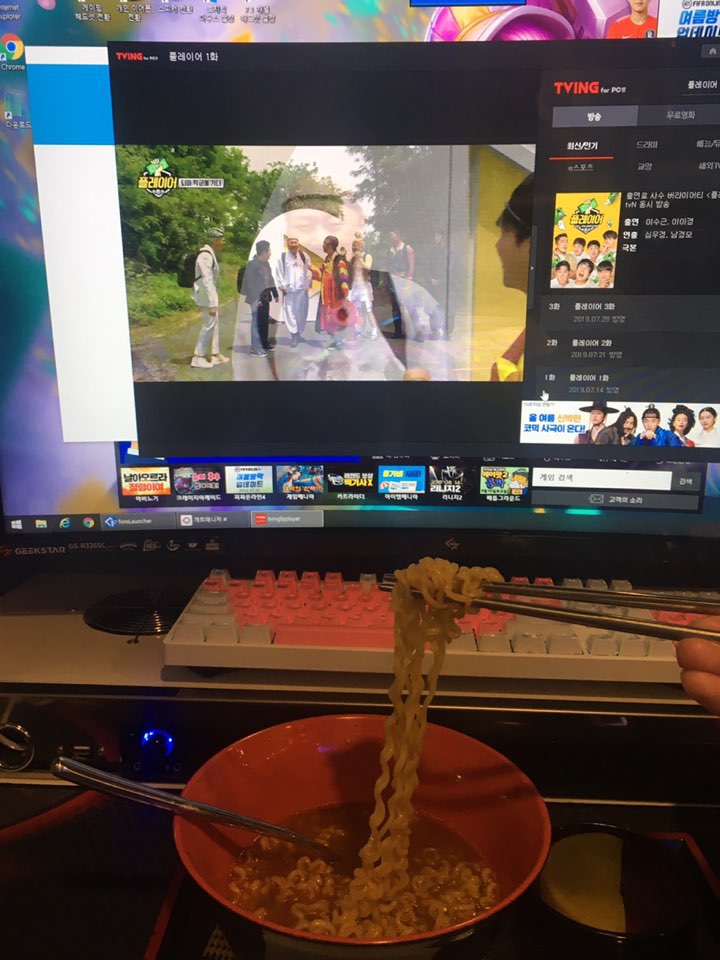 At first, PC bangs were dark and spooky, not a very attractive place to the most except for some “serious” adult gamers. However, as to attract more people, PC bangs started to grow. By 2013, all PC bangs in Korea are smoke-free and most of them remodeled themselves into a brighter-themed place. Most competitive PC bangs are equipped with 1 Gbps or 10 Gbps internet services (10 times and 100 times respectively faster than normal 100 Mbps internet). Considering major internet distributors of the United States, namely AT&T and Comcast, do not provide gigabyte speed internet many places and are not able to provide 10 gigabyte internet services yet, this is amazing. Backed up with high speed internet connection, PC bangs also equipped themselves with the latest and finest computers, allowing the guests to play whatever they want to play, even very high-end games. To attract people who are not a very big fan of playing games, PC bangs also offer favorite TV shows and movies. Considering the normal fare is $1 per hour, they are very successful in attracting people to spend some time. They also serve various types of foods (and drinks), most of them are cooked in a built-in kitchen inside PC bang by people who work there.