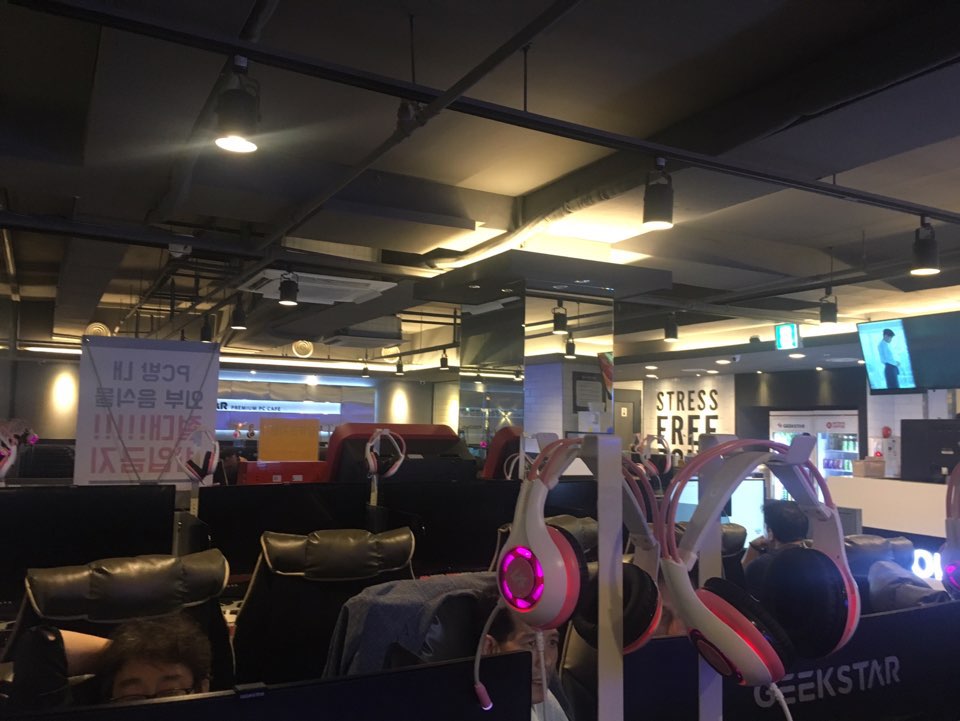 PC bang (or PC Cafe) business was booming in late 90s, when Starcraft and Warcraft by Blizzard co. gained enormous popularity among young Korean population. Also stuffed with Korean online games such as Lineage by NC Soft and Kingdom of the Winds by Nexon, countless Koreans were attracted to gaming- even relatively elderly people, who are 45+ years old, were attracted to various online games including MMORPGs and online version of Hanafuda, a Japanese origin card game. Since the late 90s, gaming became a popular choice of hobbit to people of all ages in South Korea. Now, PC bangs are literally everywhere if you live in a city. In Seoul, the capital city of South Korea, there are a couple of PC bangs in every block, no matter where you go.
